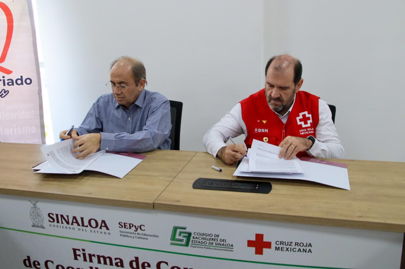La delegación Sinaloa de Cruz Roja y el Colegio de Bachilleres del Estado de Sinaloa firmaron un convenio para capacitar gratuitamente a 2 mil 250 estudiantes en primeros auxilios básicos en todos los planteles de la institución en el estado.