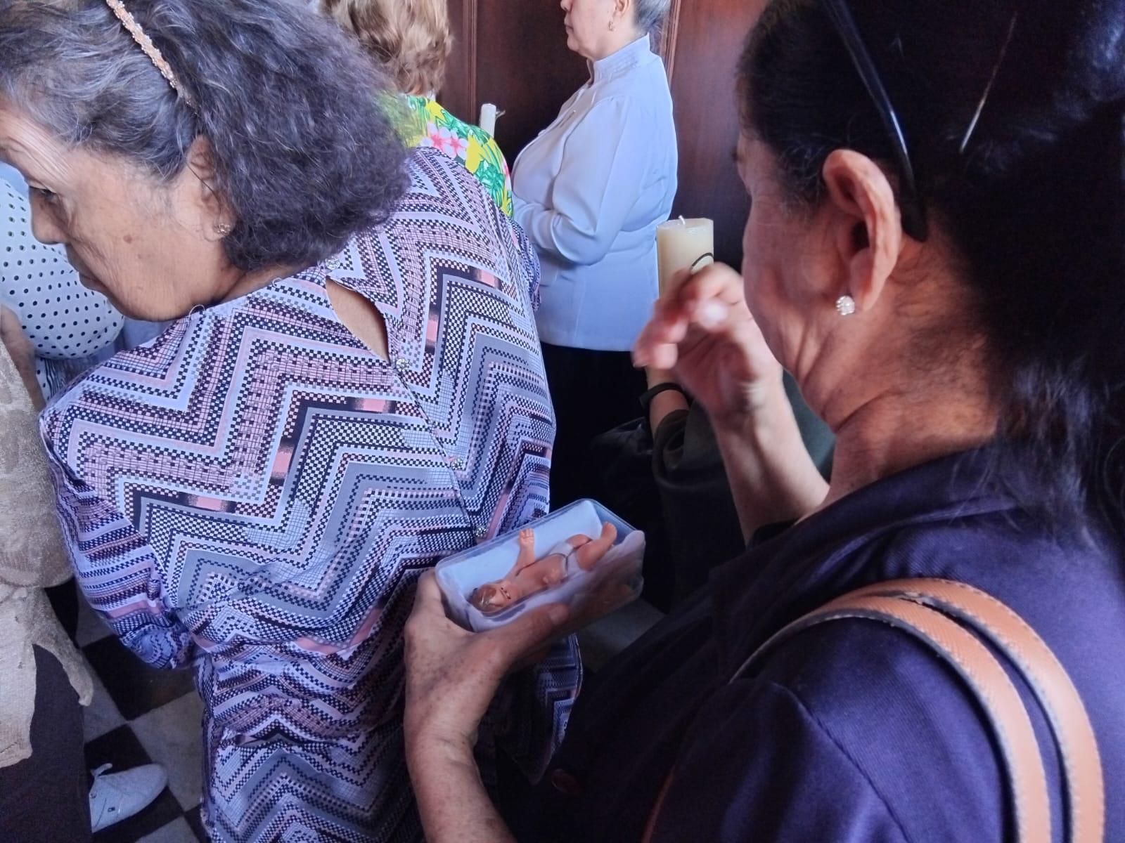 Durante la procesión, un adolescente cuidaba entre su mano derecha a un Niño Dios de al menos 5 centímetros, el cual fue bendecido por el sacerdote minutos antes de entrar a la Catedral.