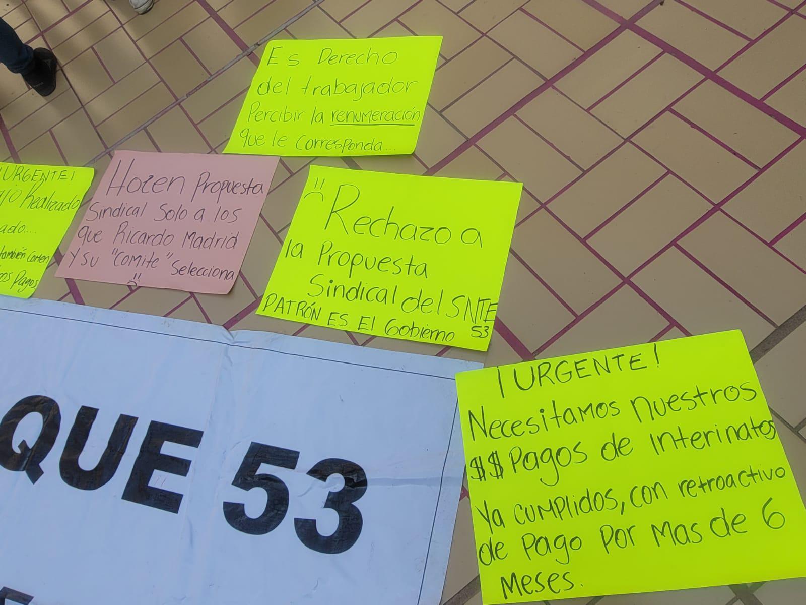 “Estamos pidiendo la solidaridad de Gobierno del Estado, pero también exigiéndole que cumpla con su responsabilidad de esos pagos... la negativa del pago tiene que ver con la propuesta sindical que consiste en que el Secretario General, Ricardo Madrid, les tiene que hacer la propuesta de pago para ellas”, argumentó Alfredo Heredia, integrante del movimiento.