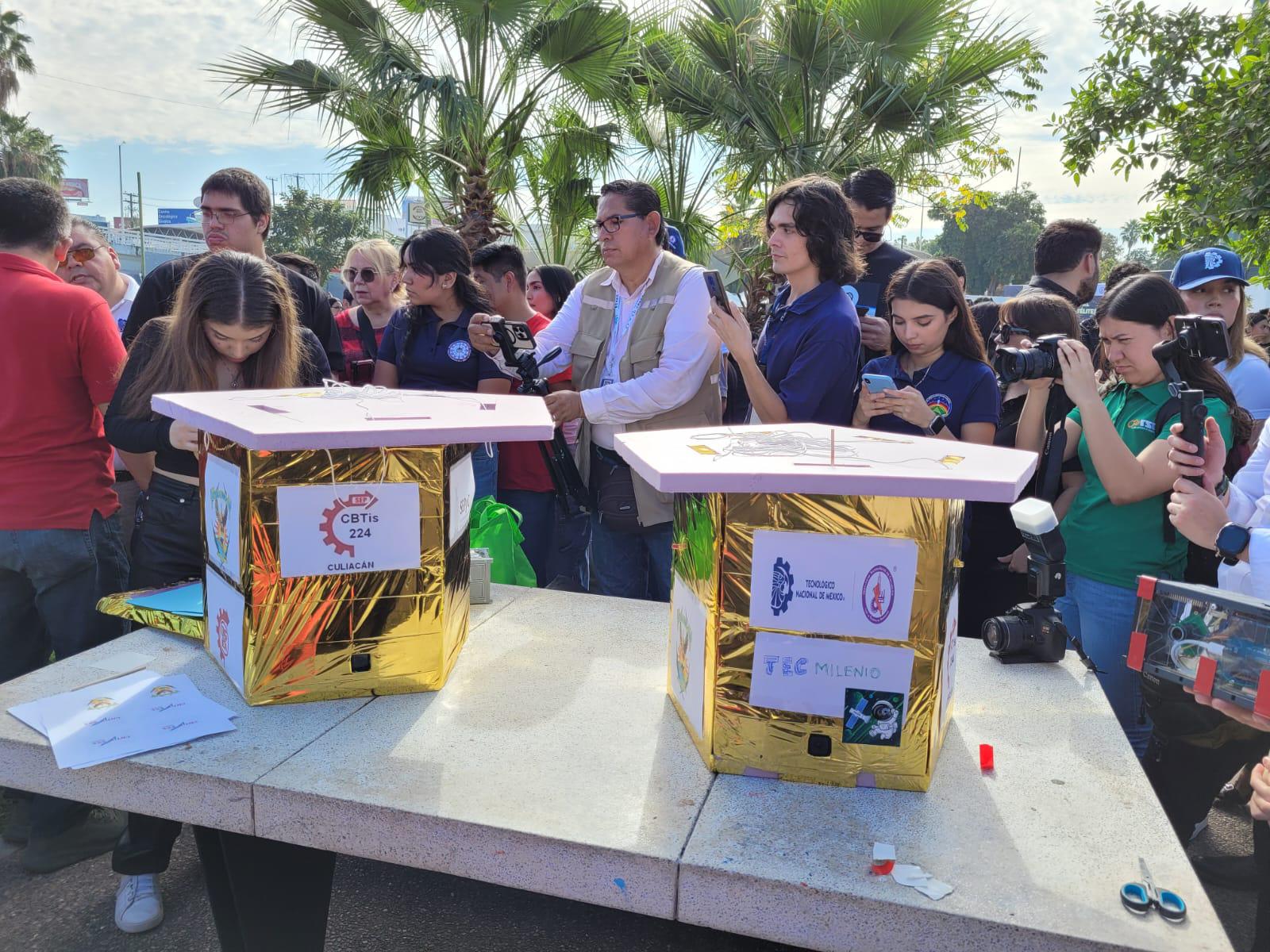 Estudiantes universitarios y de preparatorias, lanzaron 10 satélites Cubesat con mensajes de paz ante los hechos de violencia en Sinaloa.