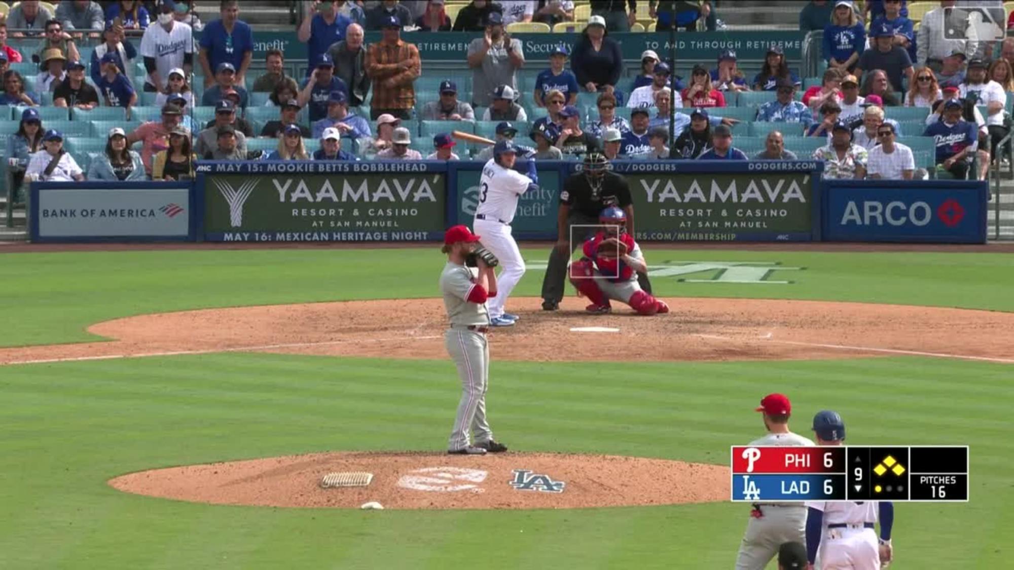 El emergente Austin Barnes dio a los Dodgers la ventaja por 6-5 mediante un sencillo de dos carreras en el octavo episodio, pero Filadelfia empató en el noveno.