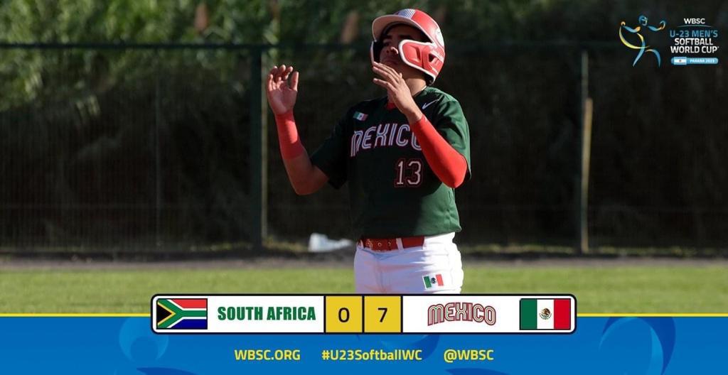 PARANÁ, Argentina._ El sinaloense Jesús Arturo Valdez y José Reyes se combinaron para lanzar sin hit en la victoria de México de 7-0 ante Sudáfrica, para avanzar a la Super Ronda de la I Copa del Mundo de Softbol Sub 23.