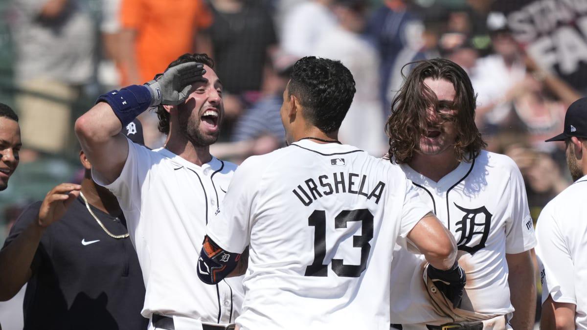 DETROIT._ El colombiano Gio Urshela pegó un jonrón de dos carreras en la décima entrada y los Tigres de Detroit remontaron tras estar abajo 9-4 en la novena para vencer el sábado 11-9 a los Dodgers de Detroit.