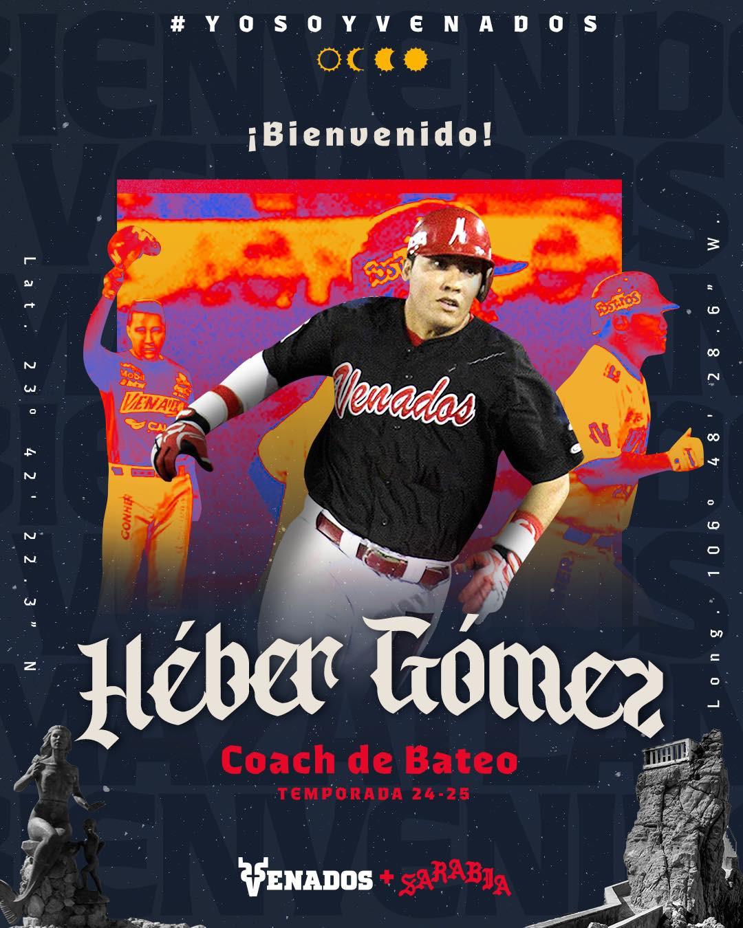 El ex parador en corto de Venados de Mazatlán, Héber Gómez Contreras vuelve a la organización para la temporada 2024-2025 de la Liga Mexicana del Pacífico en calidad de coach de bateo.