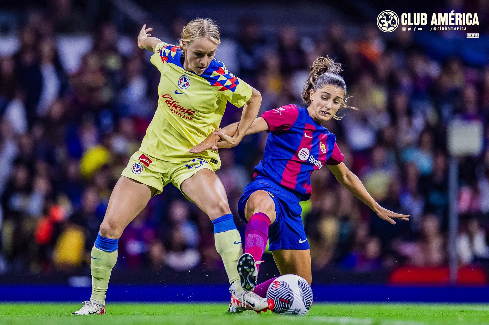 MÉXICO._ En un juego donde América Femenil supo cómo tomar control del balón y plantarle cara al Barcelona, finalmente no pudieron ser contundentes y reflejar su dominio y terminaron derrotadas 2-0 ante el equipo blaugrana que le dio minutos a todas sus jugadoras, incluyendo a Alexia Putellas.