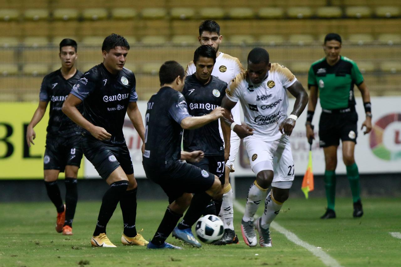 Al minuto 23, el ecuatoriano Jonathan Betancourt mandó un centro al área visitante para Paolo Yrízar, quien se levantó para meter un cabezazo que fue contenido por Cristian Campestrini, ex arquero de Dorados.