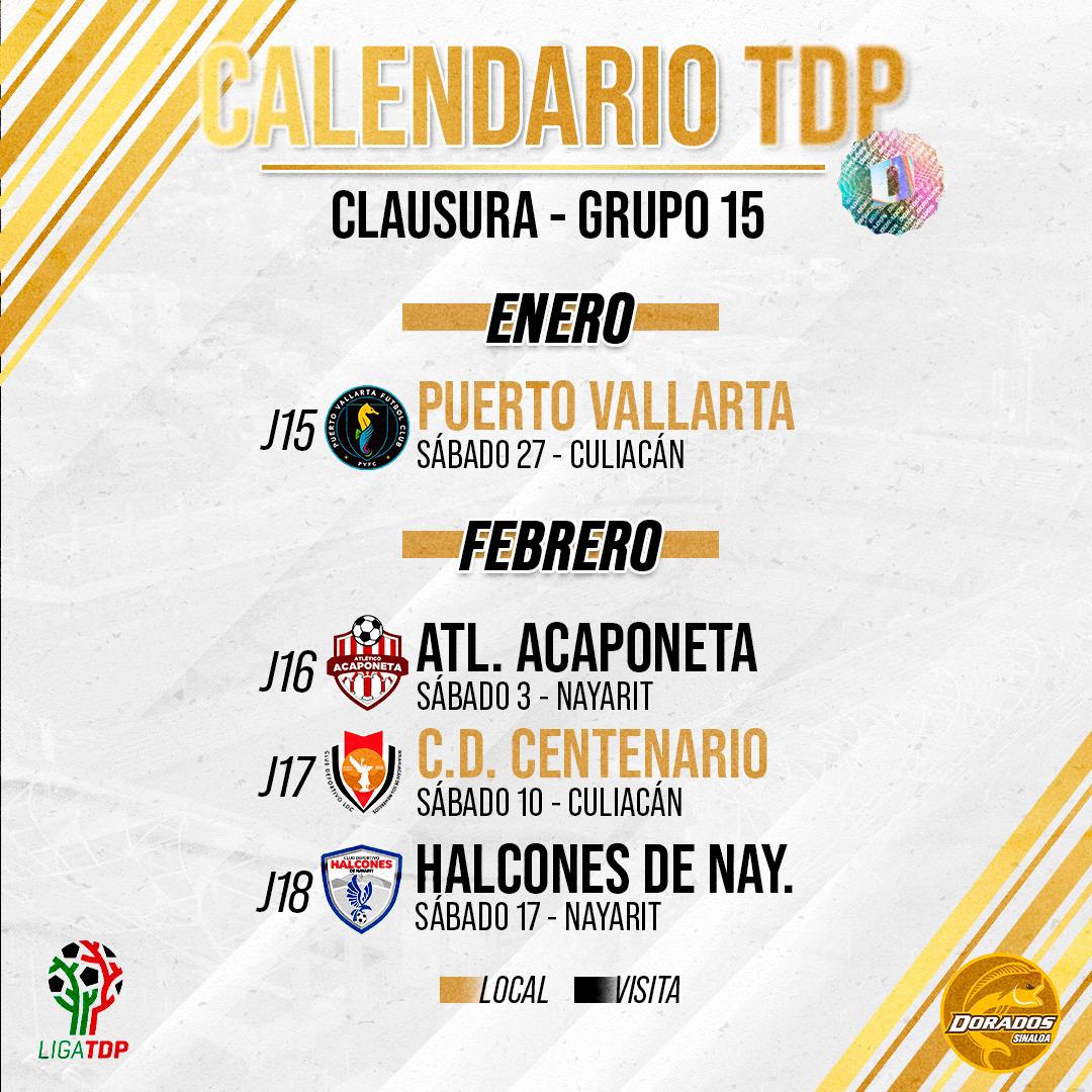 Dorados de Sinaloa, que terminó el año en la cuarta posición del Grupo 15 con 29 unidades, regresará a la actividad el sábado 27 de enero.