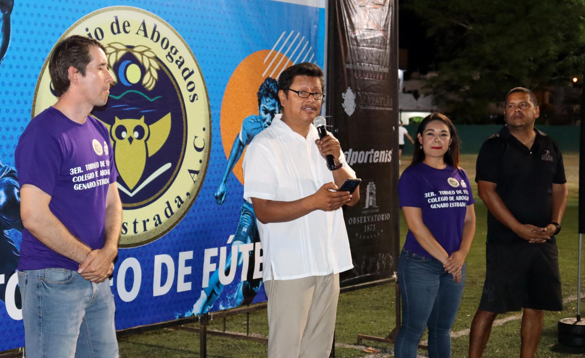 MAZATLÁN._ Los abogados siguen de fiesta, por lo que realizaron la inauguración del Tercer Torneo de Futbol del Colegio de Genaro Estrada, que se realizará durante julio y agosto, en el campo de pasto sintético del Centro Deportivo Real Pacífico.