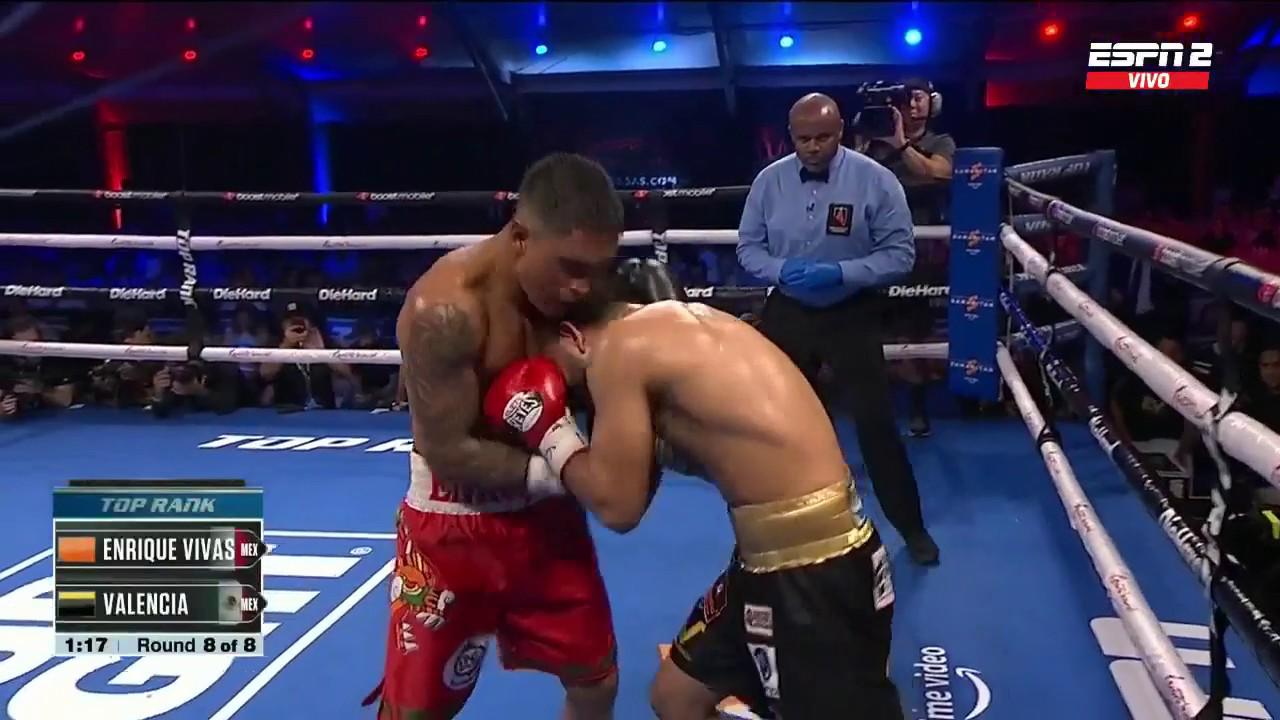 La pelea entre mexicanos fue de poder a poder, con un valiente Edy Valencia conectando buenos golpes, sin embargo, los jueces vieron ganador por decisión dividida a Enrique ‘El Ejecutor’ Vivas.