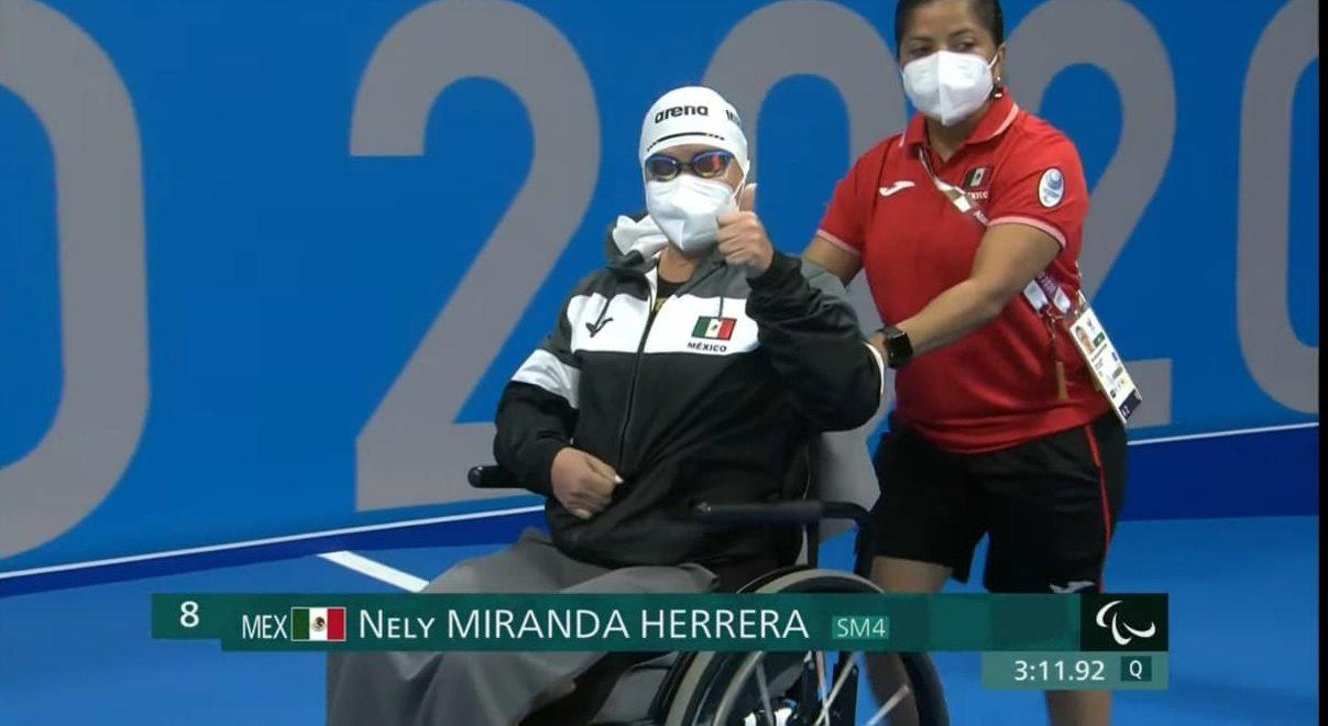 La sirena de silla de ruedas, Nely Miranda Herrera, culminó su actuación de la prueba 150 metros combinado individual femenil, de la clase SM4, entre las mejores del mundo tras ubicarse en la sexta posición de la gran final en el Centro Acuático de Tokio 2020.