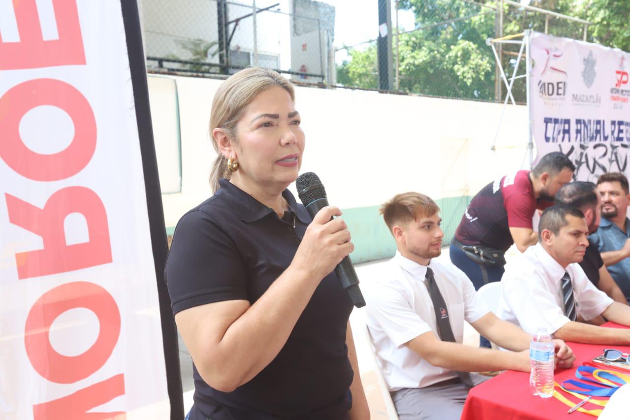 Elizabeth Peraza Mendoza dio la bienvenida a los asistentes y el mensaje fue de total agradecimiento para todos los que han sido parte en este largo recorrido de la Copa Noroeste de Karate.