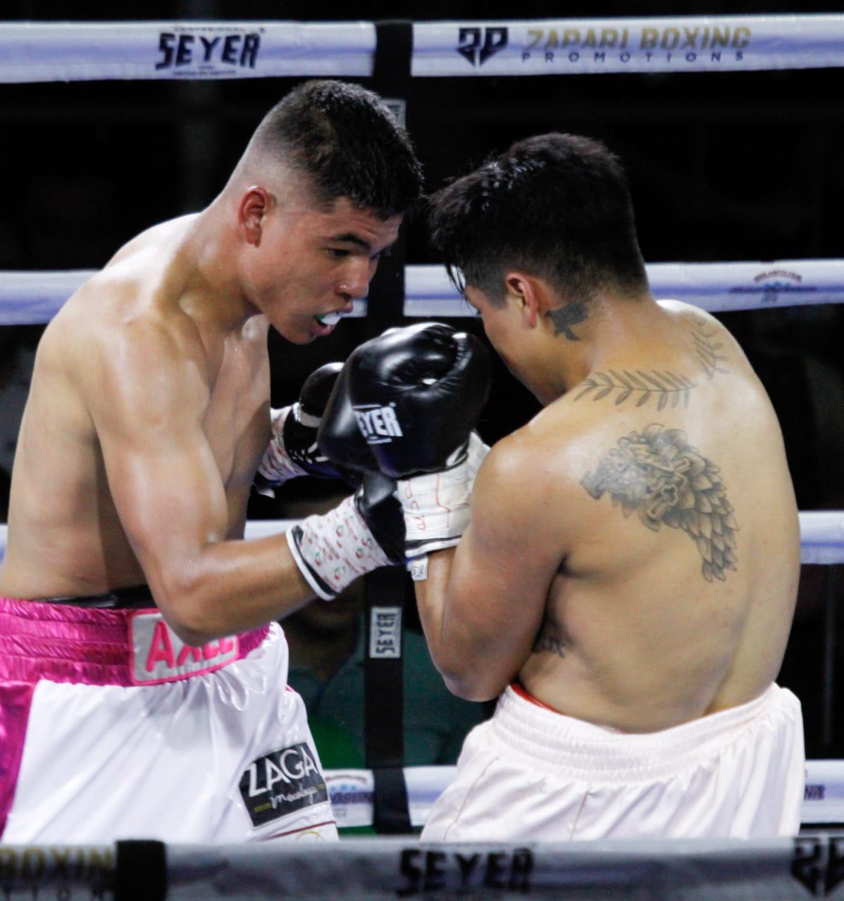 En combate de locales en peso Mosca, Erwin Ortiz (2-0) ganó por nocaut efectivo a Nahúm Meraz (0-1-1) y Mario Parra (2-0) doblegó por nocaut técnico en peso Pluma al poblano Carlos Chávez (0-2).
