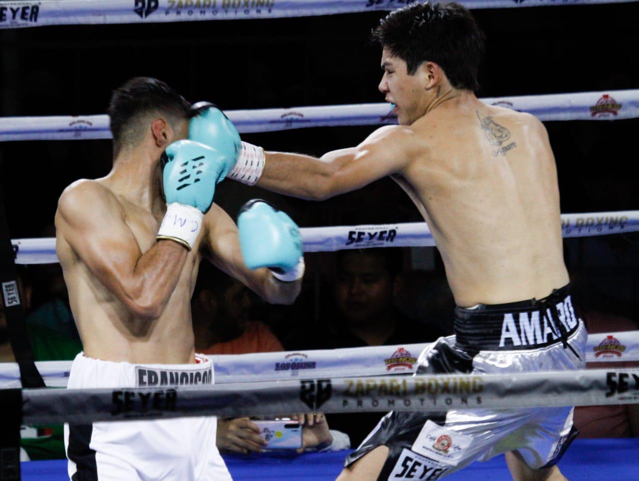 El local José Ángel “Chinito” Amaro (7-0-1) no desentonó por parte del establo de Zápari al doblar por decisión unánime en peso Ligero al hidrocálido Francisco Vidal (4-2).
