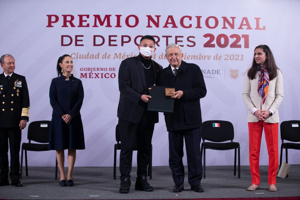 MÉXICO._ Los deportistas sinaloenses María del Rosario Espinoza y Julio César Urías recibieron este miércoles el Premio Nacional de Deportes 2021.