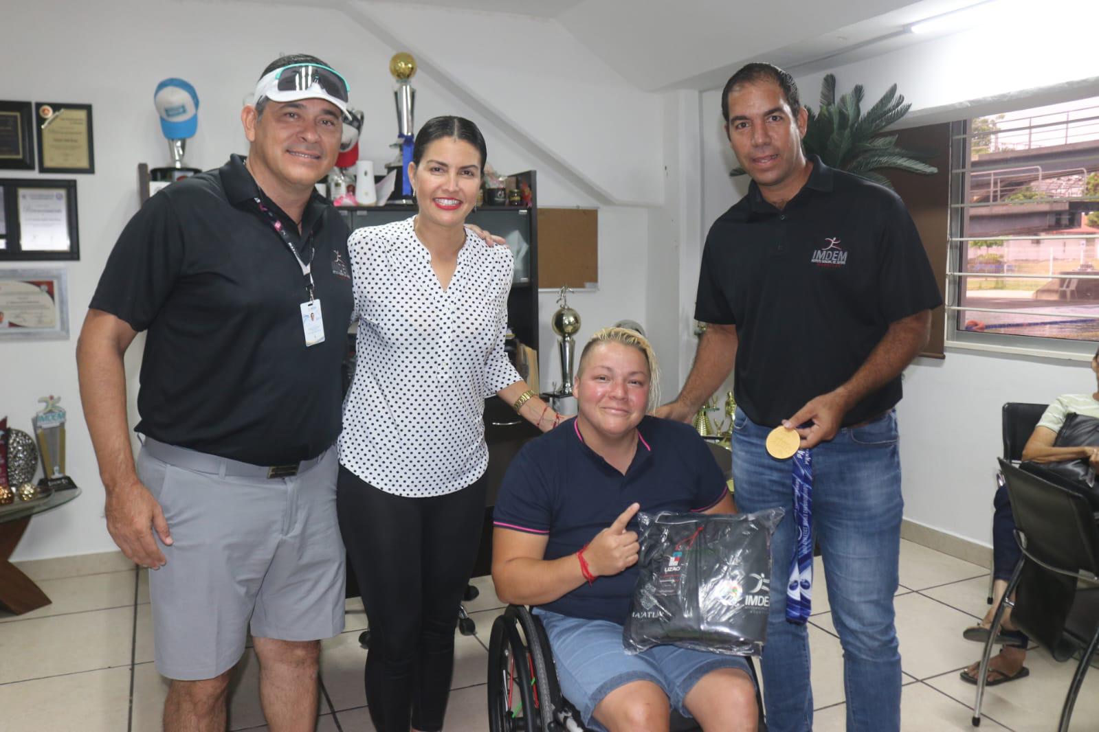 La paratleta se reunió con la directora del Imdem, Fabiola Judith Verde Rosas, para agradecer el apoyo, mostrar la medalla producto de su logro y hablar sobre futuros proyectos en su carrera.