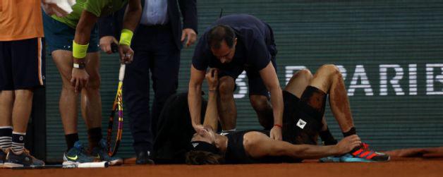 Zverev se lesiona y sale en silla de ruedas; Nadal va a la final de Roland Garros