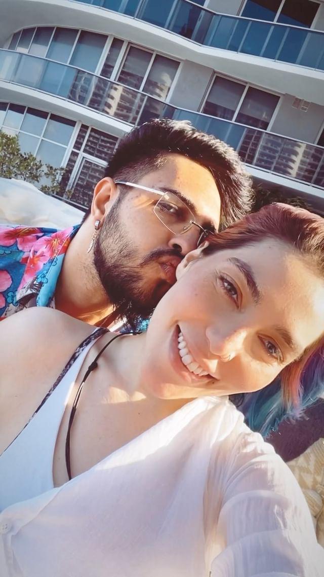 La influencer dio a conocer un video donde se le ve cariñosa y sonriente con un hombre que porta una camisa de mangas cortas en tono azul con detalles en color rosa y blanco; el cual, tampoco duda en mostrar su alegría de estar junto a la hija de la rockera.