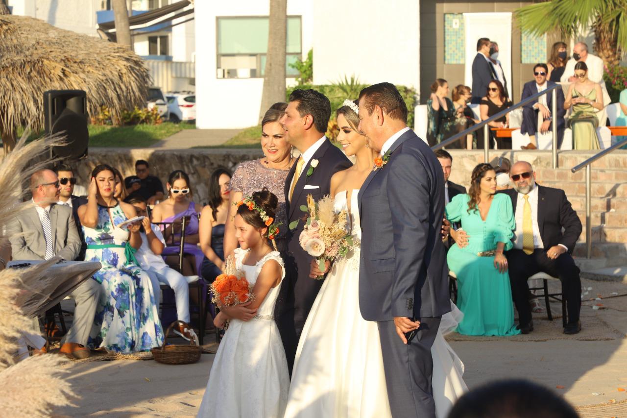 Familiares y amigos de la pareja fueron citados en La Marina El Cid para participar en la ceremonia civil de la que fueron testigos, Reveca Muñoz de Villaseñor, José Luis Villaseñor, Georgina Puente de De la Parra y Juan Carlos de la Parra, padres de los novios. Así como los hijos del novio, Miranda y Juan Carlos de la Parra.