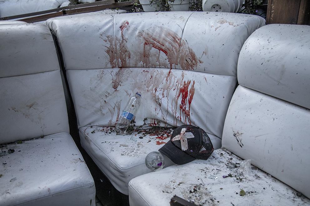 Dentro de la calle Bohdana Khmel’nyts’koho la escena era sombría y terrible. La estructura retorcida de tubos de metal y de vinil blanco desgarrado que antes fue la entrada de la elegante terraza del bar lounge Ria era ahora el portal de donde salen azorados y heridos los comensales que sobrevivieron al ataque del misil.