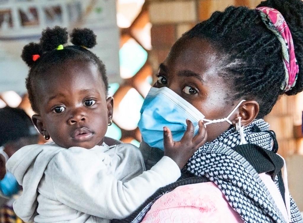 Las vacunas Covid-19 se administran en un hospital de Masaka, Uganda, donde espera esta madre con mascarilla y su bebé. © UNICEF/Kalungi Kabuye