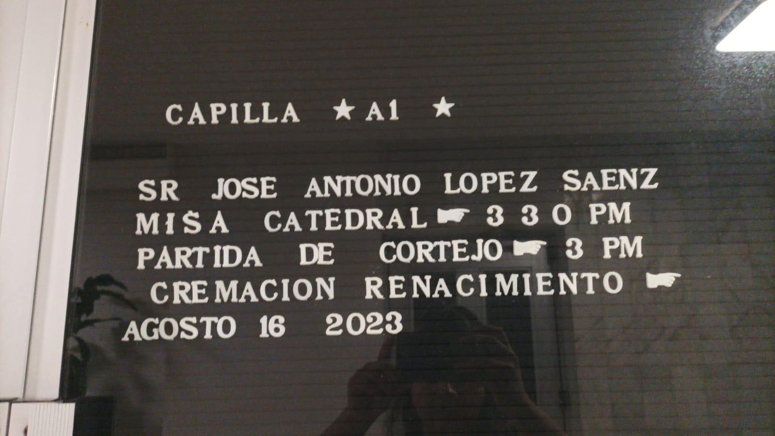 Hoy a las 15:00 horas saldrá el cortejo fúnebre de la funeraria rumbo a Catedral donde la misa será a las 15:30 horas.