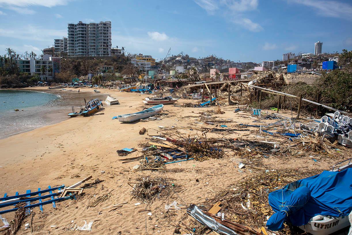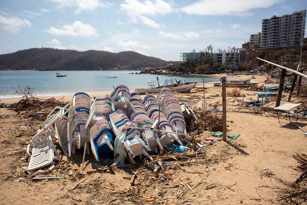 Ahora estas dos playas lucen con sus restaurantes y fondas destruidas y con toneladas de basura tiradas en la arena.