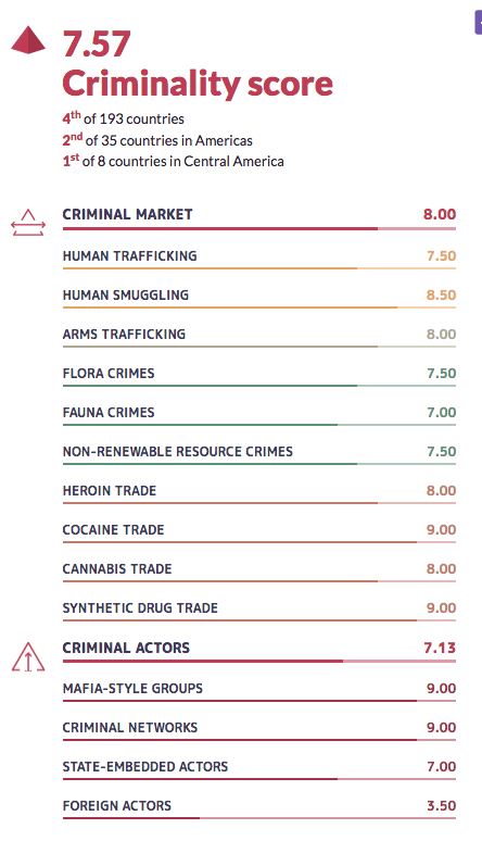También, México recibe calificaciones alta en crímenes como el tráfico de personas, crímenes de flora y fauna y de recursos no renovables.