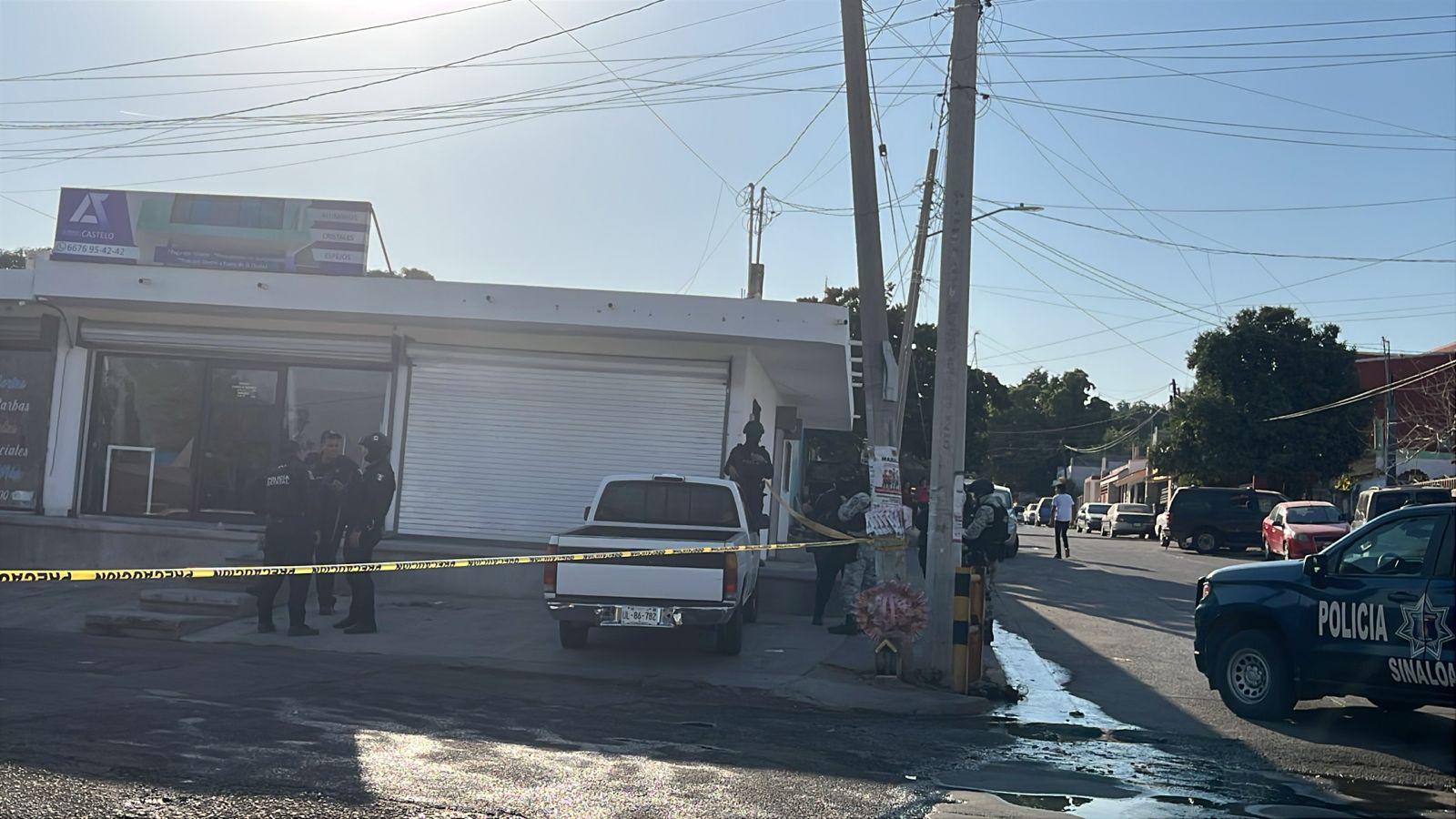 El local es de color blanco, el cual pertenece a una pequeña plaza de diferentes tipos de negocio, en donde también se presentaron varios impactos de bala en la fachada.
