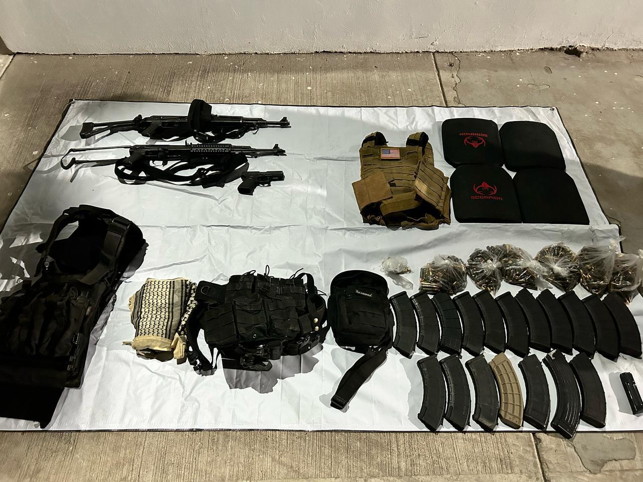 En total, los elementos aseguraron dos armas de fuego tipo fusil de fusil calibre 7.62x39 mm, dos cargadores abastecidos con 30 cartuchos útiles cada uno, 16 cargadores y 511 cartuchos útiles calibre 7.62x39 mm.