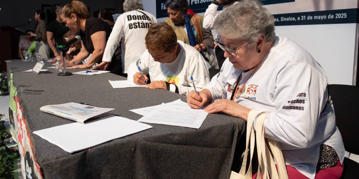 La firma de casi 100 familiares e integrante de colectivos de búsqueda, se dio en Culiacán durante el Encuentro Estatal de Colectivos de Búsqueda y Familiares de Personas Desaparecidas organizado por la Comisión Estatal de Derechos Humanos.