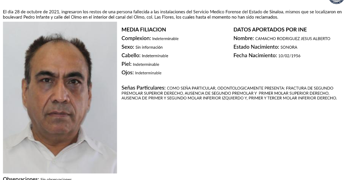 La familia del periodista sonorense Jesús Alberto Camacho Rodriguez, localizado en las instalaciones del Servicio Médico Forense en Culiacán, fue contactada por la Fiscalía General de Sinaloa.
