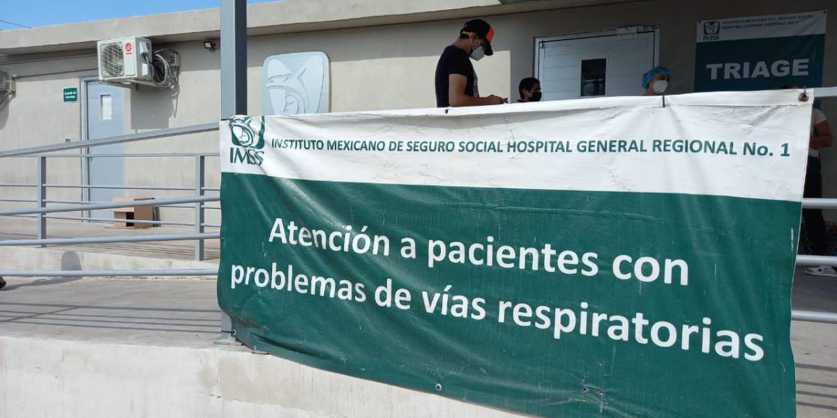 CULIACÁN._ Bajo un pequeño árbol buscando la sombra en un área verde, Guadalupe espera escuchar su nombre en el triage respiratorio del Hospital General Regional No. 1 del IMSS en Culiacán.