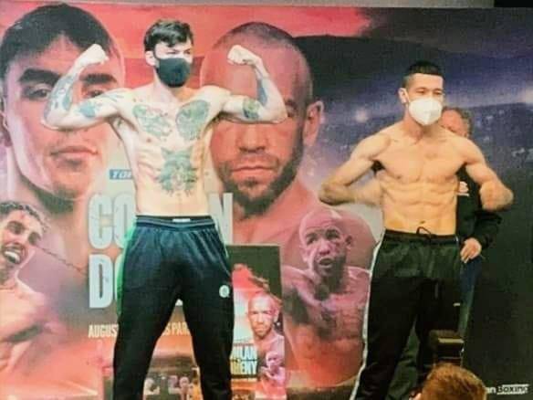Este jueves se celebró la ceremonia de pesaje y ambos contendientes cumplieron el requisito sin contratiempos: el irlandés detuvo la báscula en 139.3 libras, mientras que el mochiteco marcó 135 libras y media.