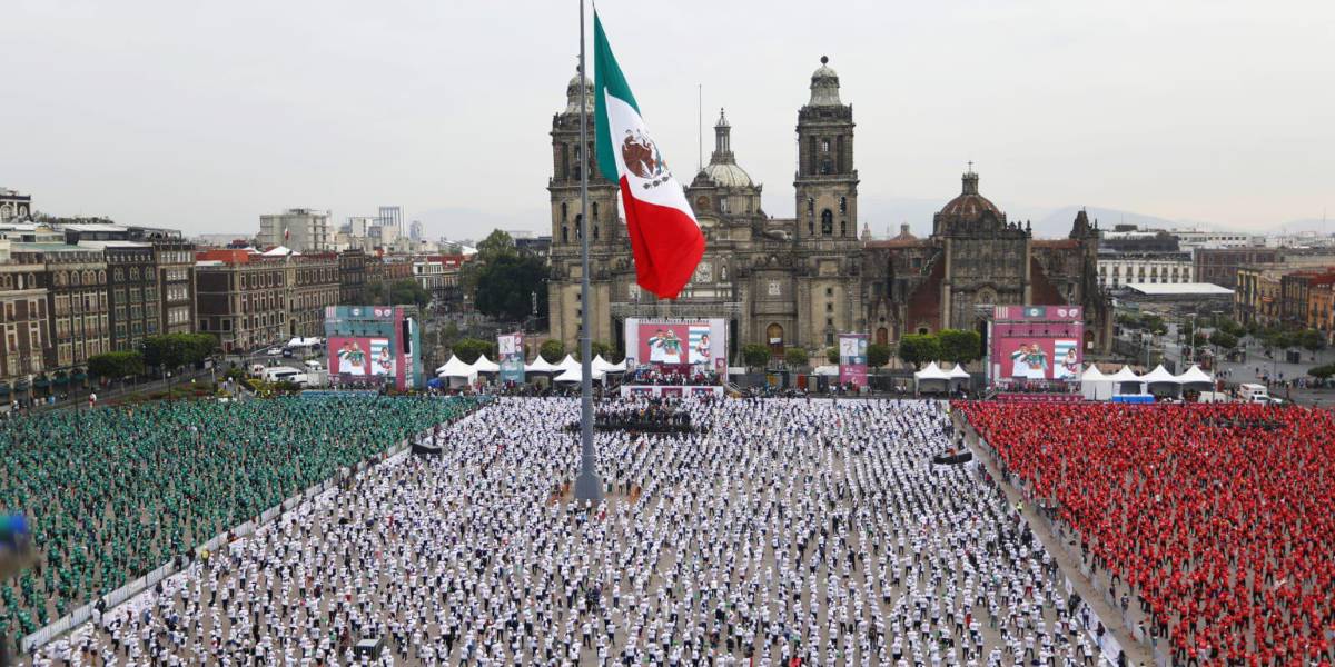 Durante el evento de 30 minutos, organizado por el Instituto del Deporte (Indeporte) de Ciudad de México, se repartieron playeras de los colores verde, blanco y rojo para formar un mosaico.
