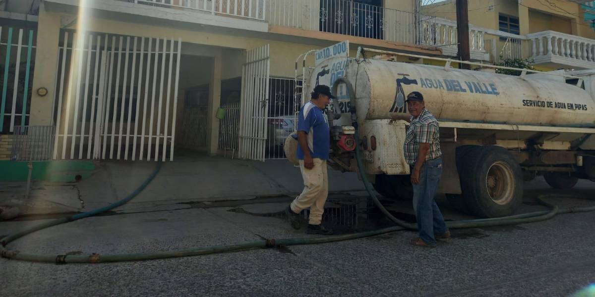 Pese a todo, el servicio de agua potable no se ha restablecido al 100 por ciento en la cabecera municipal, donde los escuinapenses llevan pipas a surtir del vital líquido sus hogares.