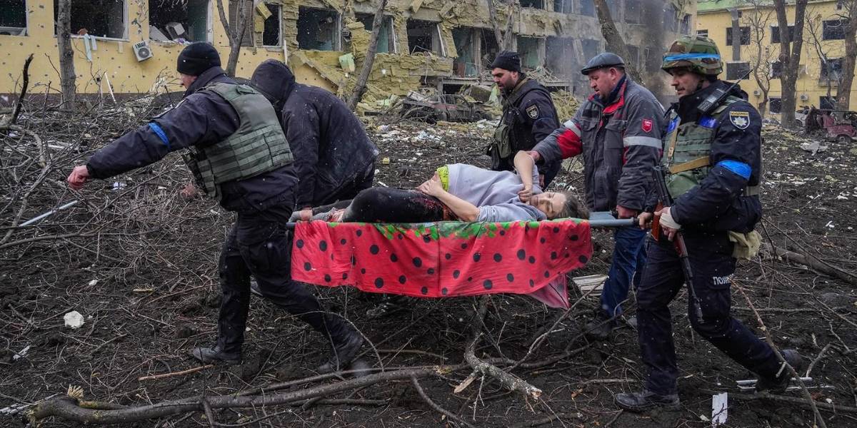 La imagen muestra a Iryna Kalinina de 32 años, embarazada y herida, quien es trasladada desde un hospital de maternidad que resultó dañado durante un ataque aéreo ruso en Mariúpol, Ucrania, el 9 de marzo de 2022. Su bebé, de nombre Miron (que significa “paz”), nació sin vida, y media hora después, Iryna también murió.