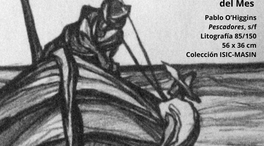 Se trata del grabado Pescadores, una litografía de 56 x 36 cm de la Colección Isic- Masin, en la que se puede observar esa línea característica en la obra de este artista, llena de vigor, movimiento y fuerza. O’Higgins, de quien este año se conmemoran 120 años de su nacimiento, el 1° de marzo de 1904, es un pintor de origen estadounidense, quien desarrolló en México una amplia carrera como pintor y muralista, así como formador de nuevas generaciones de artistas.