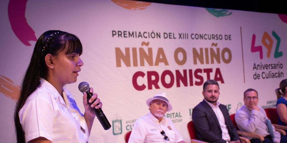 Realizan la décimo tercera entrega del Premio ‘Niño o Niña Cronista de Culiacán’; la ganadora de esta edición fue Milagros Guadalupe Pineda Bernal, alumna de sexto grado de la escuela primaria Lázaro Cárdenas, con su crónica titulada ‘Un viaje de ensueño’