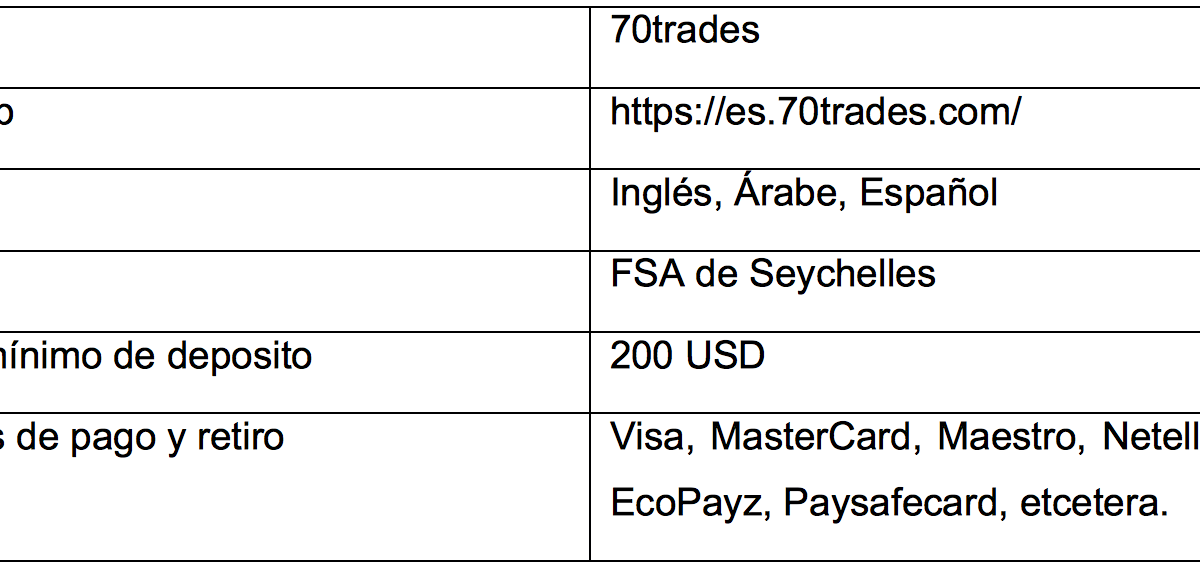 70trades, un bróker eficiente