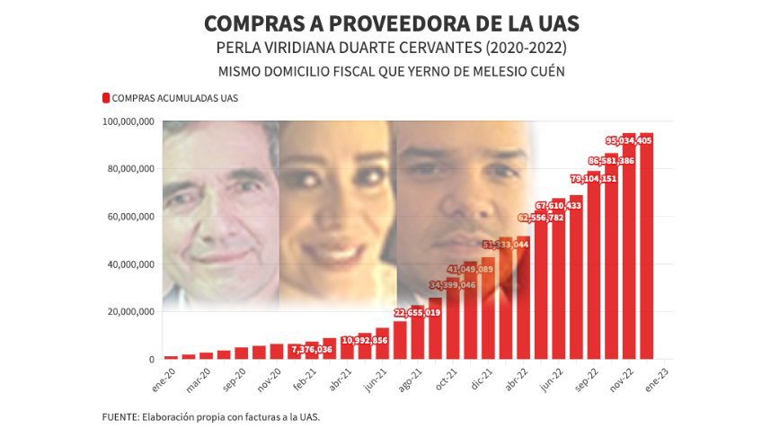 De acuerdo con las facturas en poder de Noroeste y Revista Espejo, Duarte Cervantes le facturó a la UAS 6.4 millones de pesos en 2020, luego 36.3 millones en 2021 y finalmente 52.2 millones de pesos en 2022, lo que la convierte en la séptima proveedora de la Universidad.