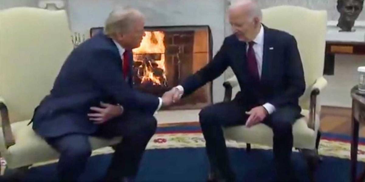 “Bueno, señor Presidente electo, Donald, felicidades, espero que tengamos una transición tranquila. Bienvenido”, dijo Biden, mientras Trump lo escuchaba con las manos entrelazadas e inclinado hacia adelante en el sillón.