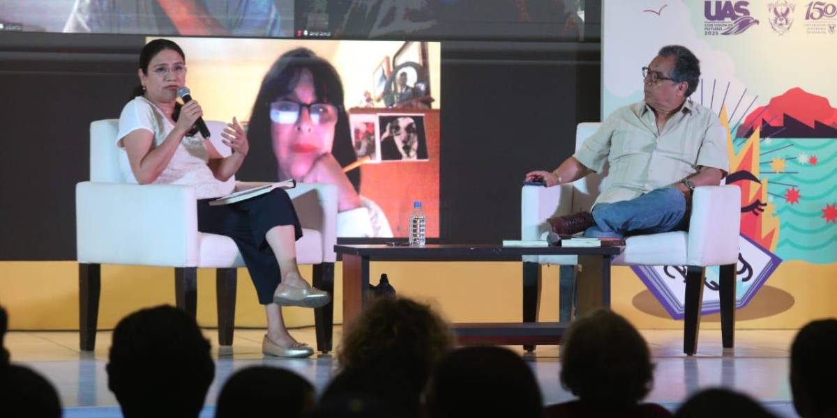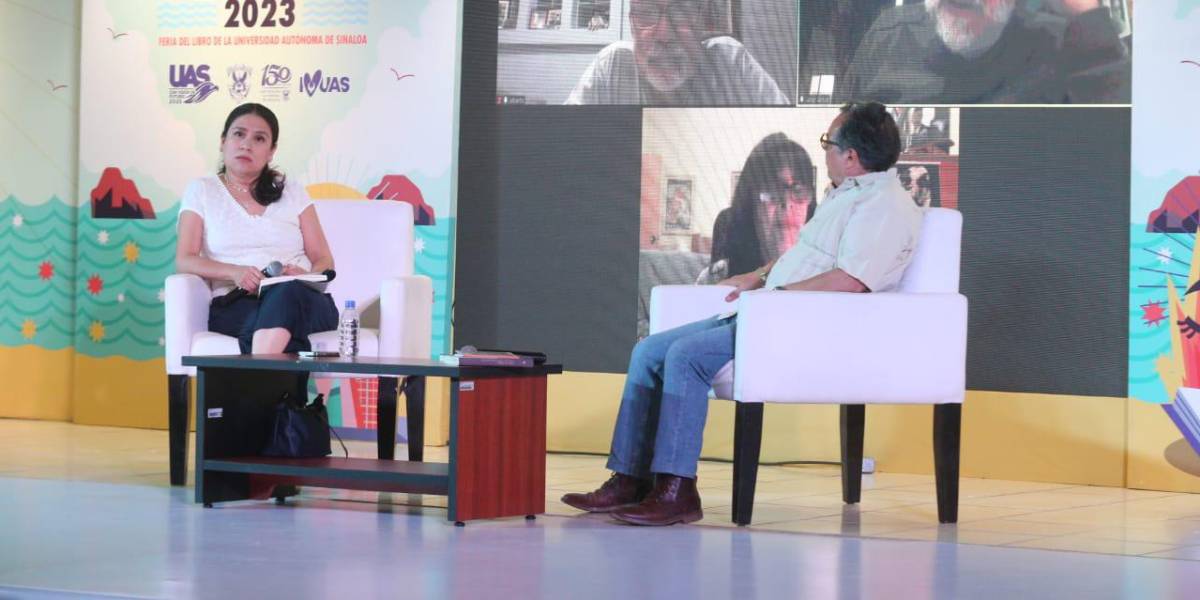 “Eso es básicamente el libro, muy recomendado para los que estudian periodismo, muy recomendado para los que quieren entender la historia contemporánea de este país desde un punto de vista muy, muy especial, muy único y aparte es sumamente atractivo por como lo planean”, dijo Guillermina García, quien comentó la obra de manera presencial desde el Polideportivo de la UAS en Mazatlán junto con José Ángel Leyva.