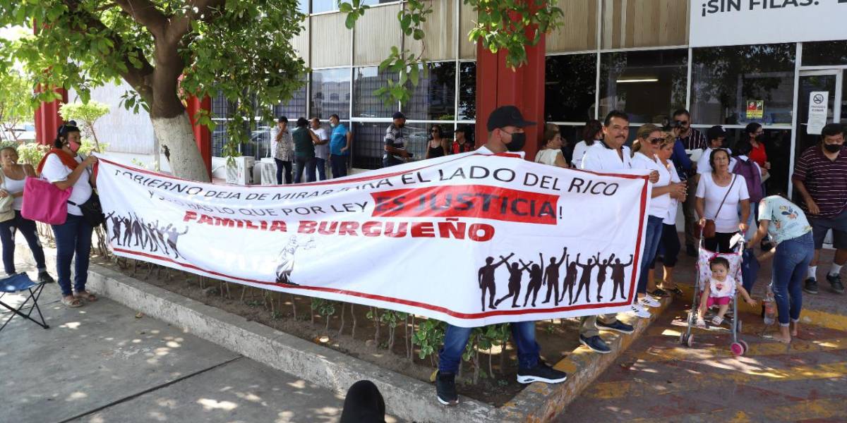Integrantes de la familia Burgueño se manifestaron a las afueras de la Unidad Administrativa en la zona sur, para denunciar lo que consideran “bloqueo político” de las autoridades estatales.