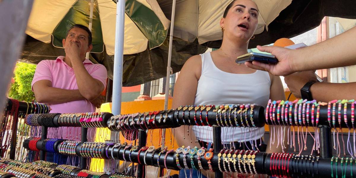 Gloria Aguirre, comerciante de Bisutería artesanal, contó acerca de los productos que venden, su elaboración y los problemas por los que han pasado en el último mes debido a la falta de visitantes y el evitar salir a poner su puestos en las calles ante la inseguridad.