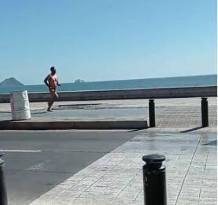 Otro hombre aparece desnudo corriendo por el malecón de Mazatlán