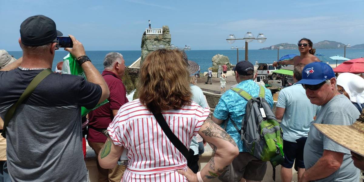 Los grupos de paseantes de distintas nacionalidades se observaron recorriendo la Plazuela Machado, Catedral, el mercado y esperando el salto icónico del clavadista en la Glorieta Sánchez Taboada. Así como paseando a bordo de los autobuses con rumbo al rumbo del malecón y Zona Dorada.
