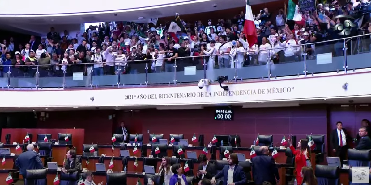 Cientos de manifestantes contra la reforma al Poder Judicial de la Federación ingresaron este martes al Salón de Plenos del Senado de la República, por lo que Gerardo Fernández Noroña, presidente de la Mesa Directiva de la Cámara de Senadores, se vio obligado a suspender la sesión ordinaria de manera indefinida.