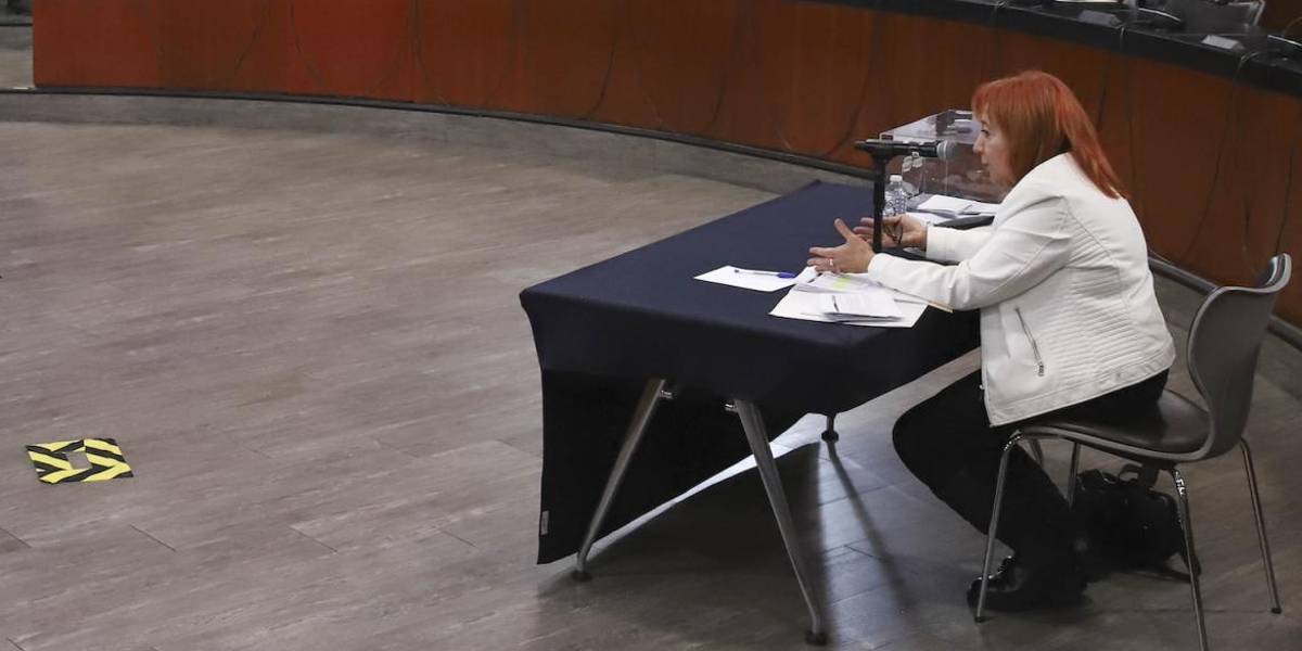 La funcionaria dijo que se presentaba sin esperar ninguna ventaja, pese a que algunos senadores, como el vicecoordinador de Morena Ignacio Mier, han llamado a crear un consenso a favor de su continuidad.
