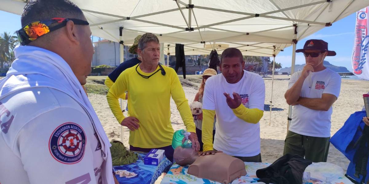 La sede fue en la zona de playas del antiguo Hotel El Faro, donde los invitados brindaron cuatro temas fundamentales que ayudarán a los salvavidas a realizar un rescate exitoso y en casos emergentes brindar valoración médica al paciente para prolongar su estabilidad clínica previo al arribo de los cuerpos de emergencia.