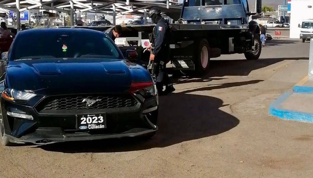 El primer vehículo fue localizado en las inmediaciones de la colonia Mercado de Abastos, entre la calle Mina y Heroico Colegio Militar, cuando los policías ingresaron al estacionamiento de un supermercado, y observaron un automóvil de la marca Ford, línea Mustang, sin placas de circulación, por lo que procedieron a solicitar su estatus en Plataforma México; se corroboró que cuenta con reporte de robo en Estados Unidos.